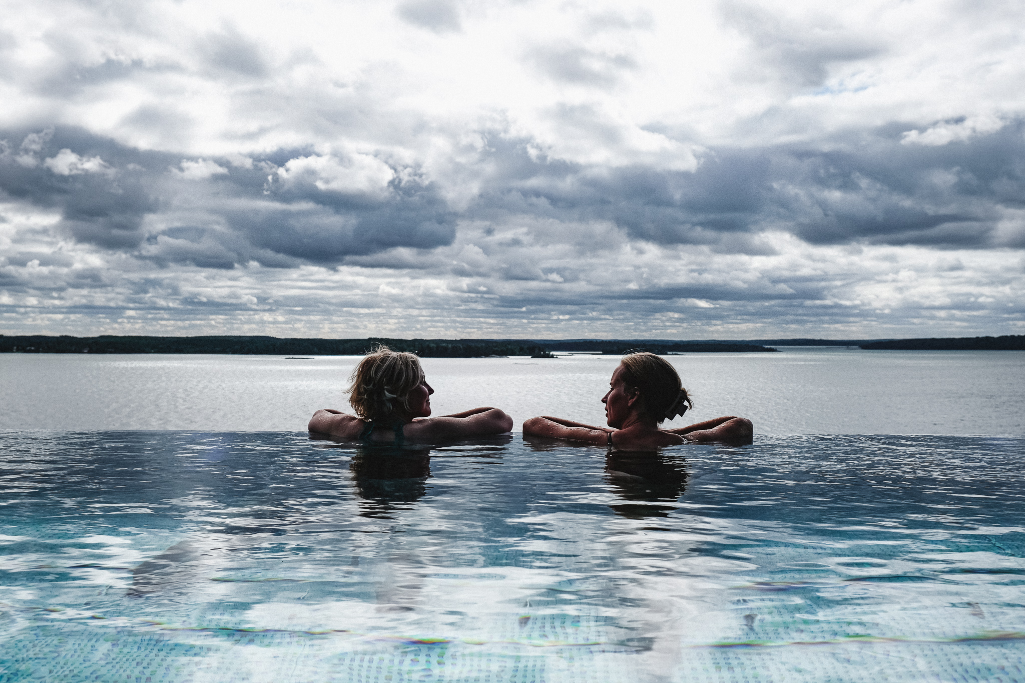 Två vänner vid Vildmarkskällan på Vildmarkshotellet. Bilden är hämtad från samarbete med resebloggen Resfredag.