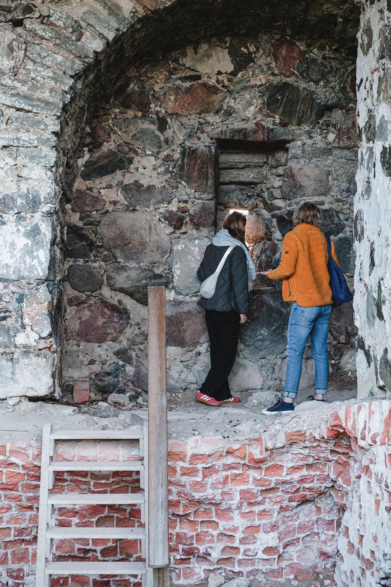Två vänner besöker Stegeborgs slottsruin i Östergötland. Bilden är hämtad från samarbete med resebloggen Resfredag.