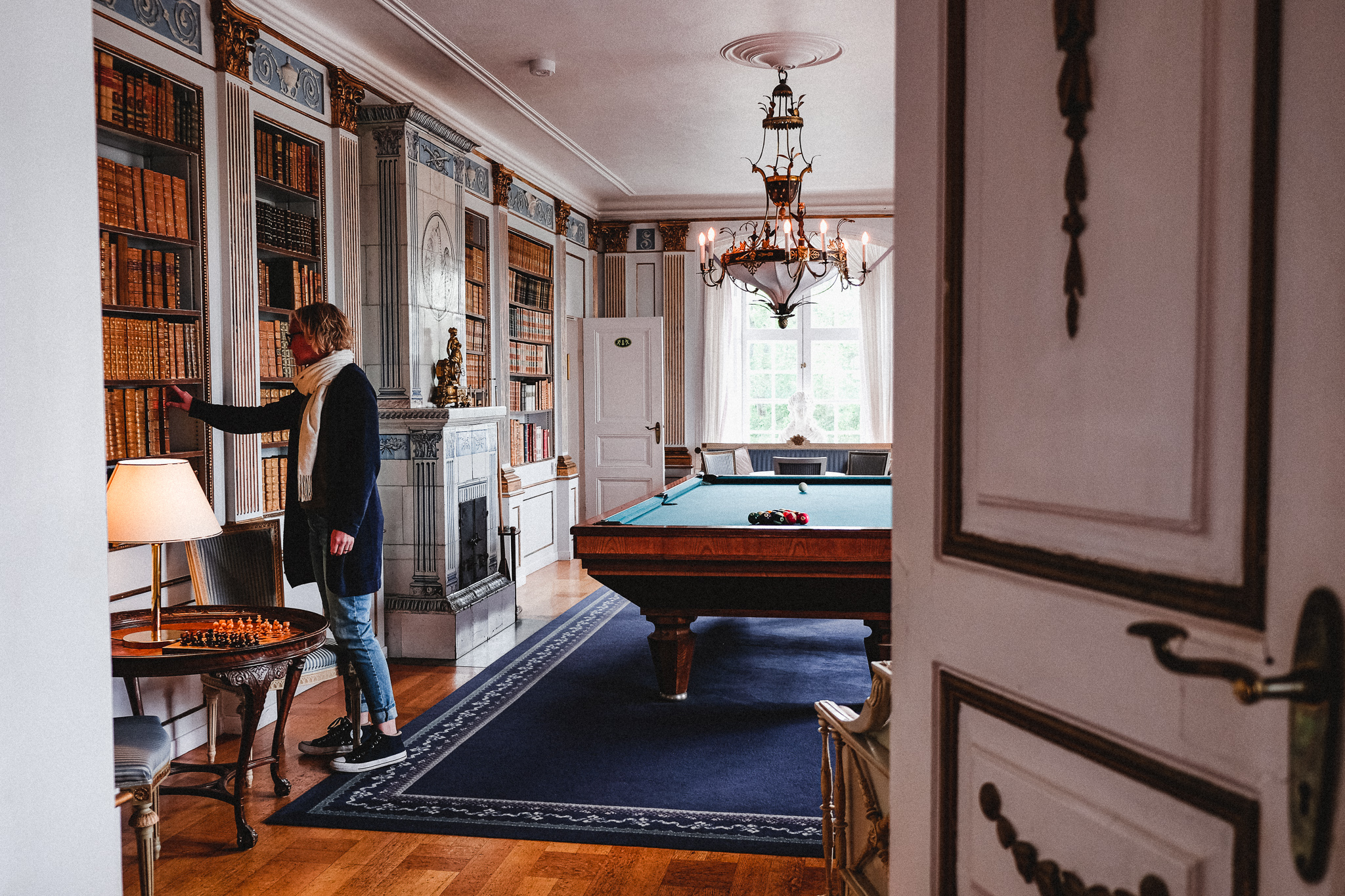 Kvinna i ett av rummen på Mauritzbergs slott utanför Norrköping.