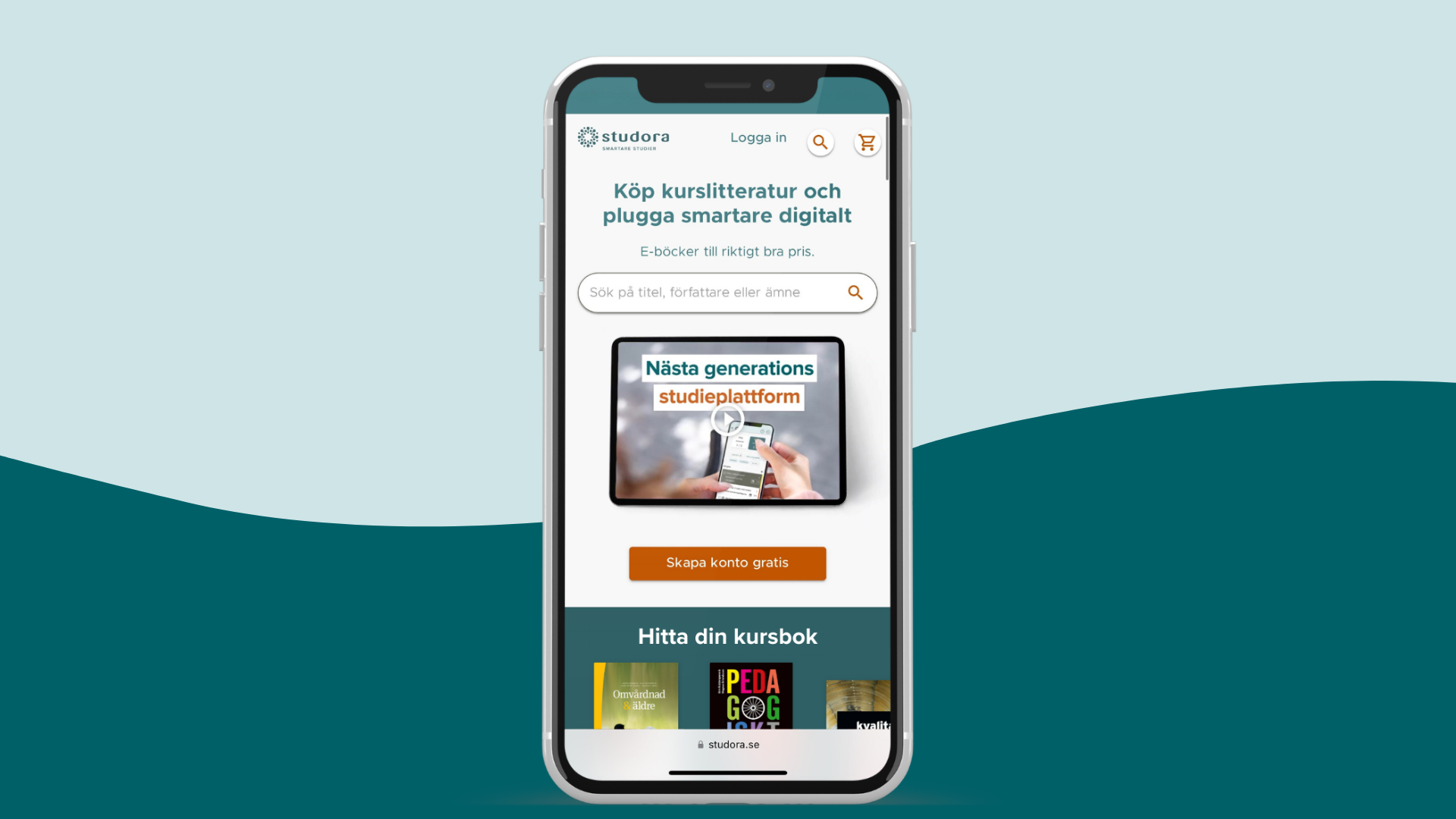 Studora studieplattform mobil med bakgrund
