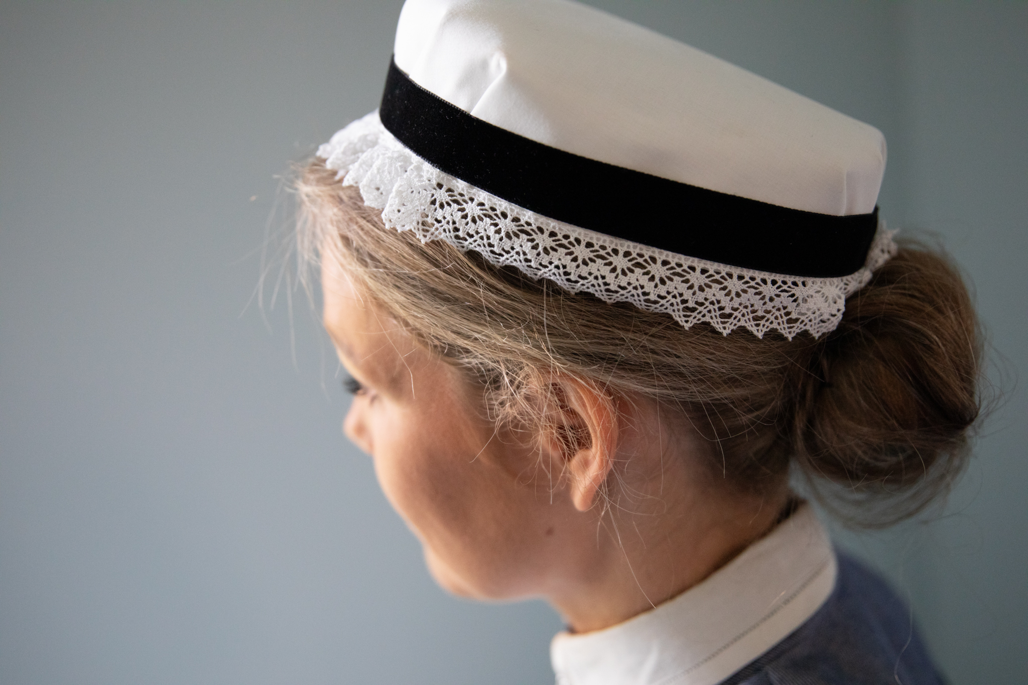 Den vita Sophiamössan med svart band symboliserar systrarnas gemenskap och påminner om Drottning Sophias värderingar och arbete. SH_hist_X0A4487