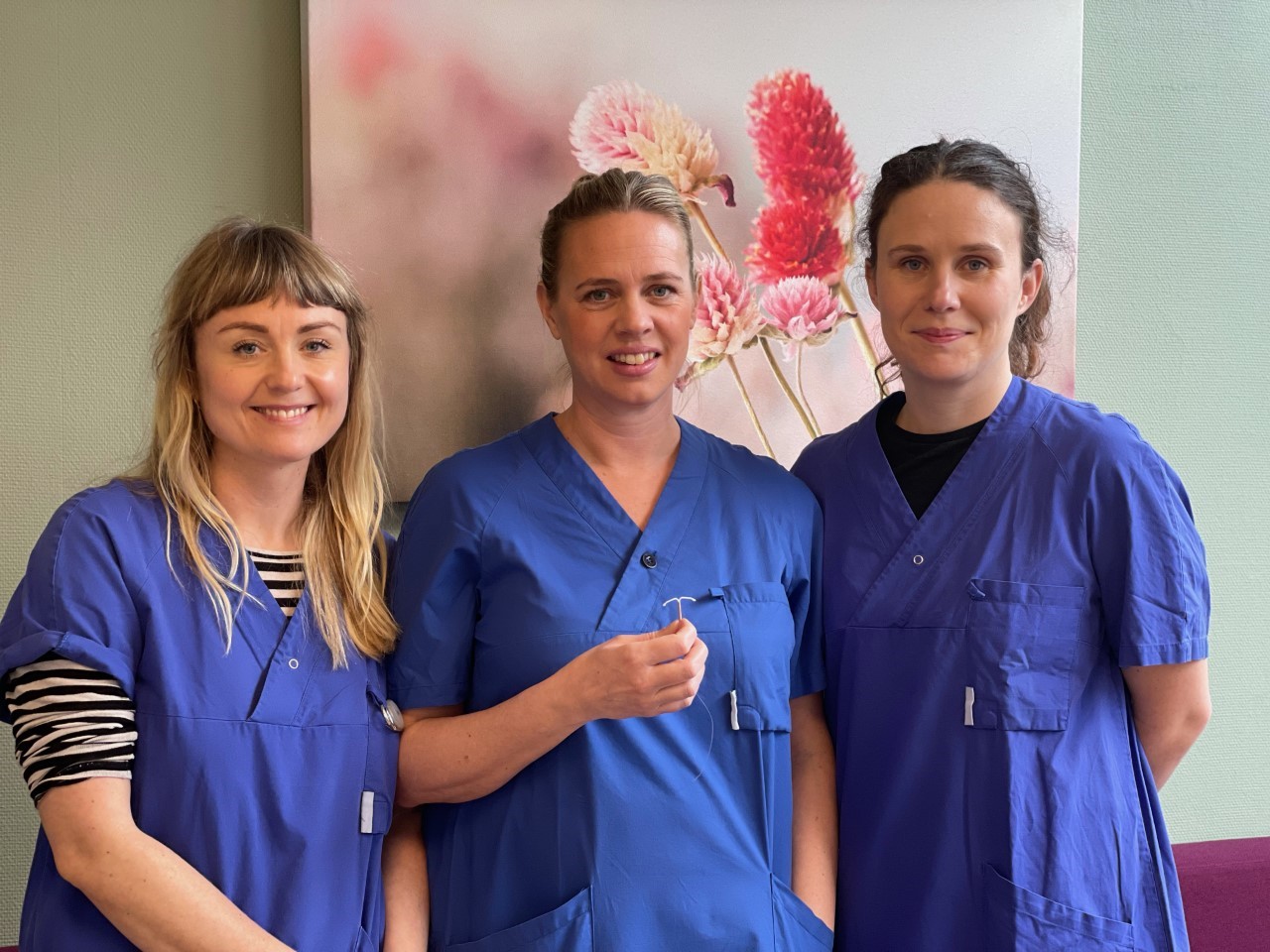Barnmorskorna Sofie Kruse Lisa Niklasson och Carita Hallberg, hälsar kvinnor som behöver hjälp med P-stav eller spiral, välkomna till någon av de lördagsöppna barnmorskemottagningarna.