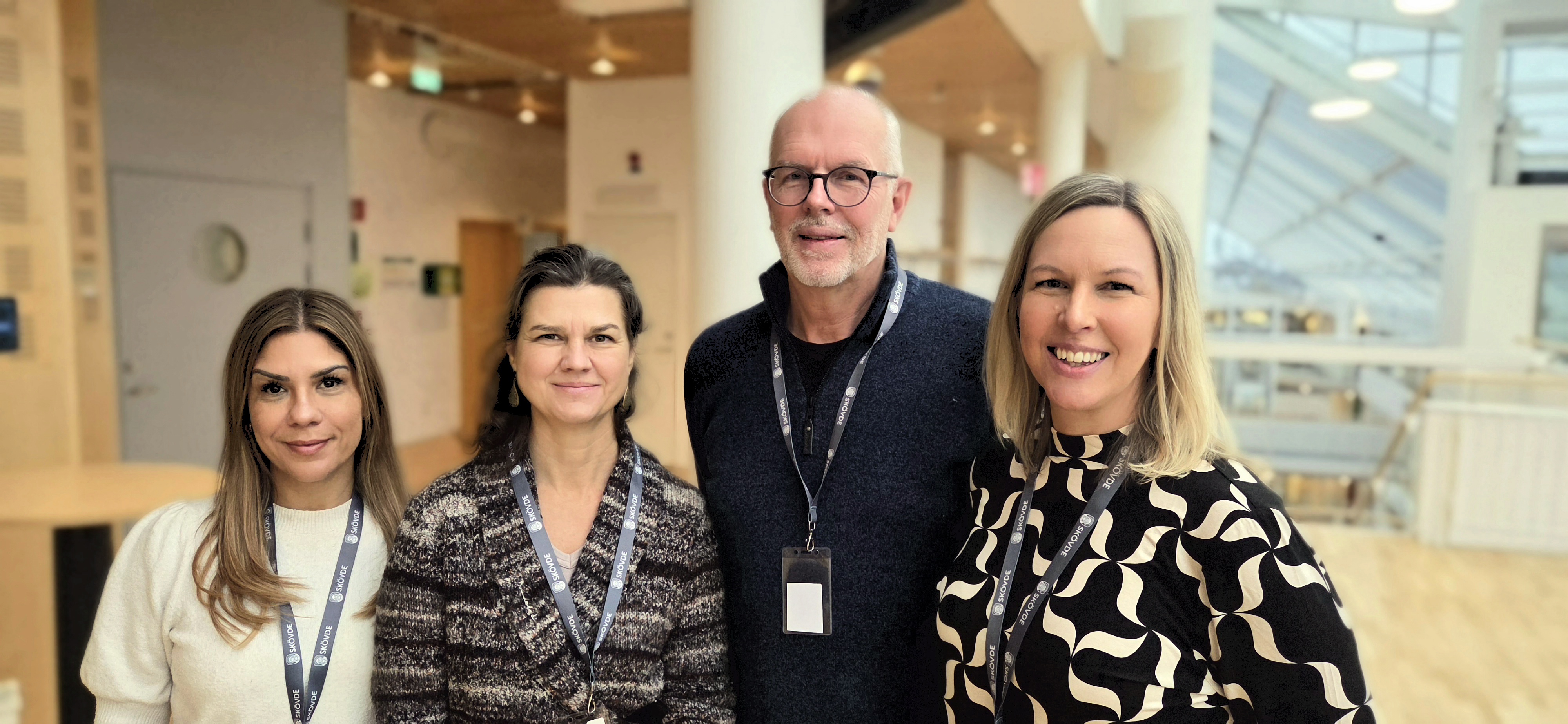 Det tvärprofessionella teamet från Skaraborgs Sjukhus består av Nilo Dalefalk, sjuksköterska, Wiebke Hagman, sjuksköterska, Jan Hallström, läkare, och Sara Tysk, undersköterska. Foto: Skövde kommun
