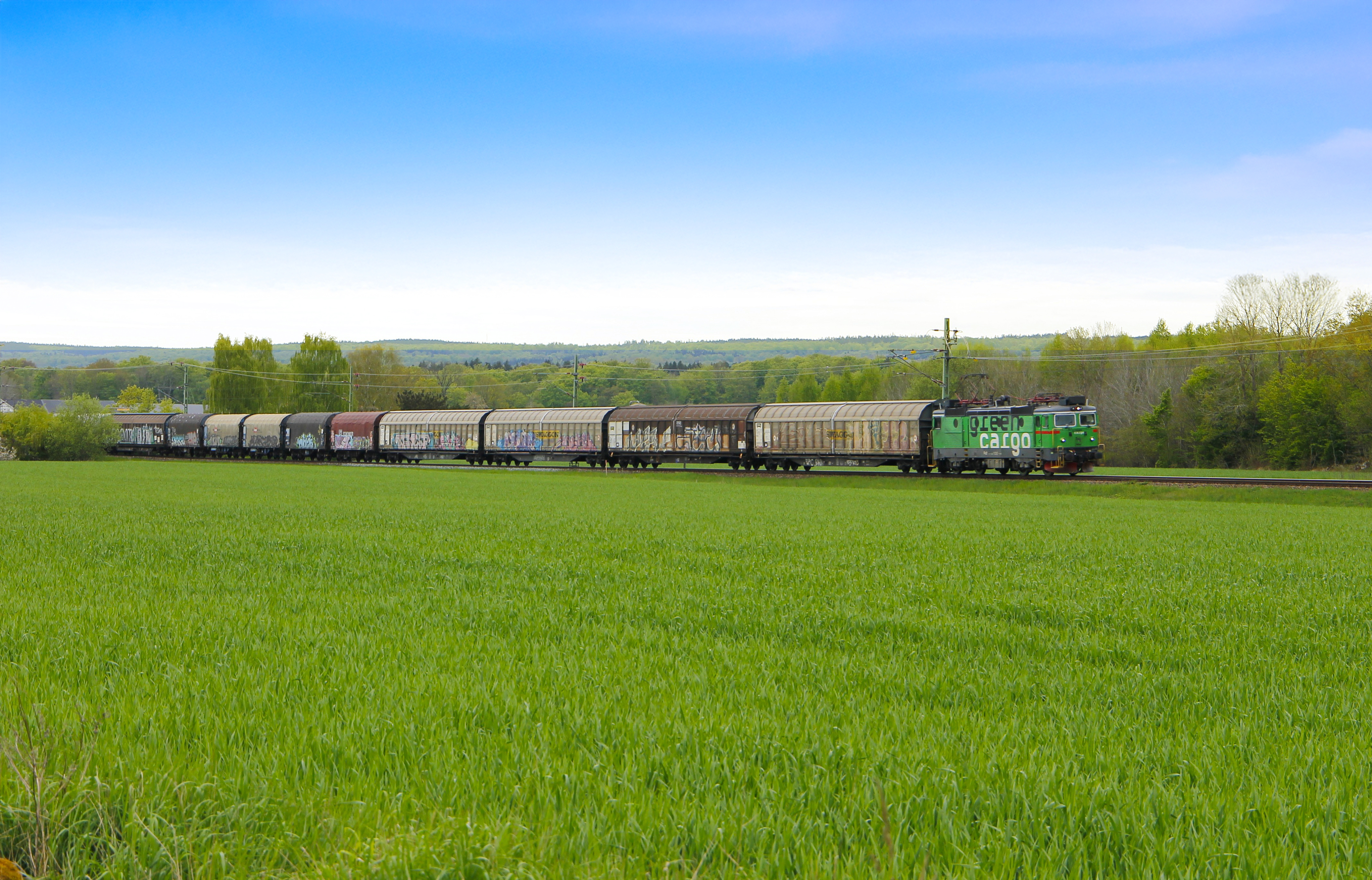 Green Cargos godståg passerar genom Skåne